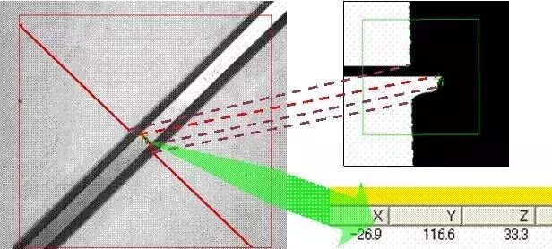 偵測目標的局部3D特性,顯示沿激光衍條照射路徑上的目標截面形狀。對在3D視覺程序中因2D成像缺乏有效的特征量而無法進行準確定位時會比較有效。