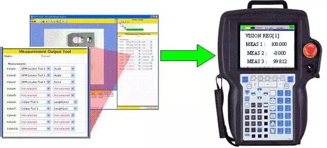 輸出測量數值(Locator tool中的”Score/分值“、”Size/比例“,Caliper tool中的”Length/長度“等)至視覺寄存器VR。這些數據可以復制至機器人數據寄存器R并在TP程序中自由調用。
