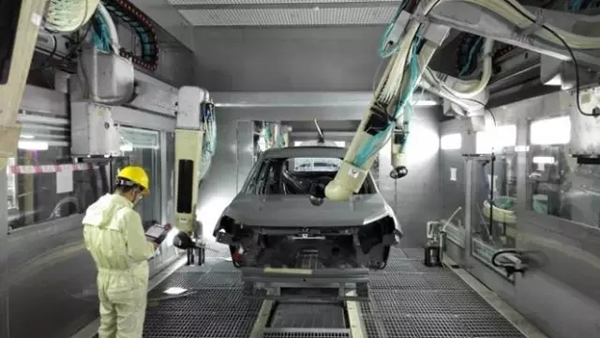 北京長安涂裝車間面漆二線為長安首條全自動化噴涂線。首次采用FANUC機器人內口噴涂工藝,彌補了長安在內口噴涂機器人工藝領域的空白。內口噴涂質量可在人工噴涂基礎上提升30%,涂料利用率可提高40%,全生命周期內可節約成本1.7億元。