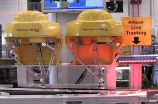 運用于質量較大的鈑金件整列作業則輪到大一號的拳頭機器人M-2iA上場。M-2iA系列機器人負載3kg至6kg,*大運動速度可達10000mm/s,*大直徑1130mm,涵蓋有3軸、4軸及6軸等不同機型。配合FANUC iRVision視覺系統的Visual tracking(視覺跟蹤技術),機器人可實現連續不斷地高速整列作業。